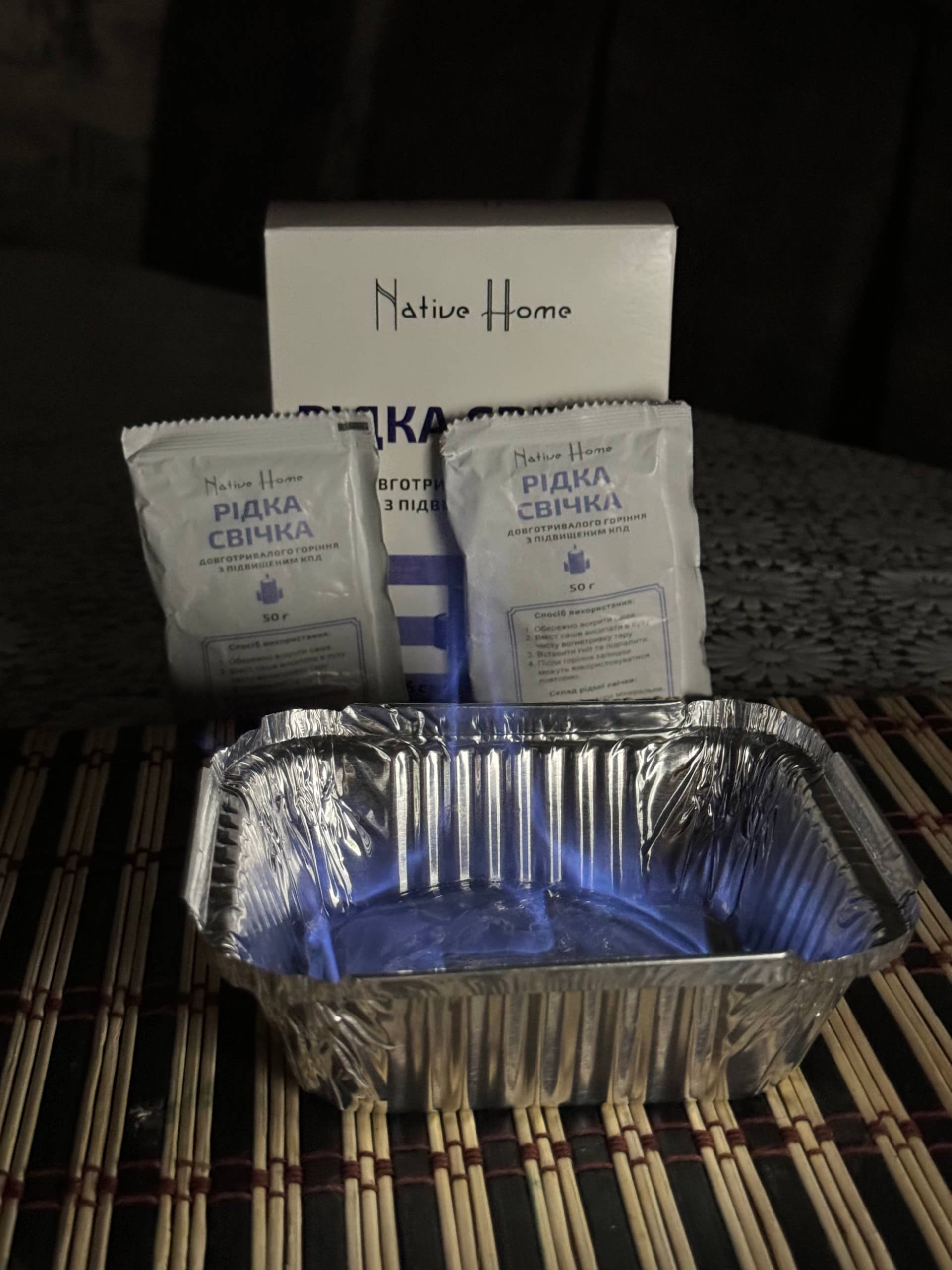 «Багаторазова гель-свічка EcoFlame Innovations — це унікальний гель, створений на основі натуральних і біорозкладаних компонентів. Принцип її роботи полягає у повільному окисленні органічних речовин, яке відбувається при взаємодії з киснем повітря. Цей процес генерує тепло і світло, але при цьому не виділяє шкідливих речовин або сильного запаху, що робить його ідеальним для використання в житлових приміщеннях. Передбачає можливість повторного використанні — до 14 циклів горіння та має три способи використання — для обігріву повітря в приміщенні, освітлення та приготування їжі».