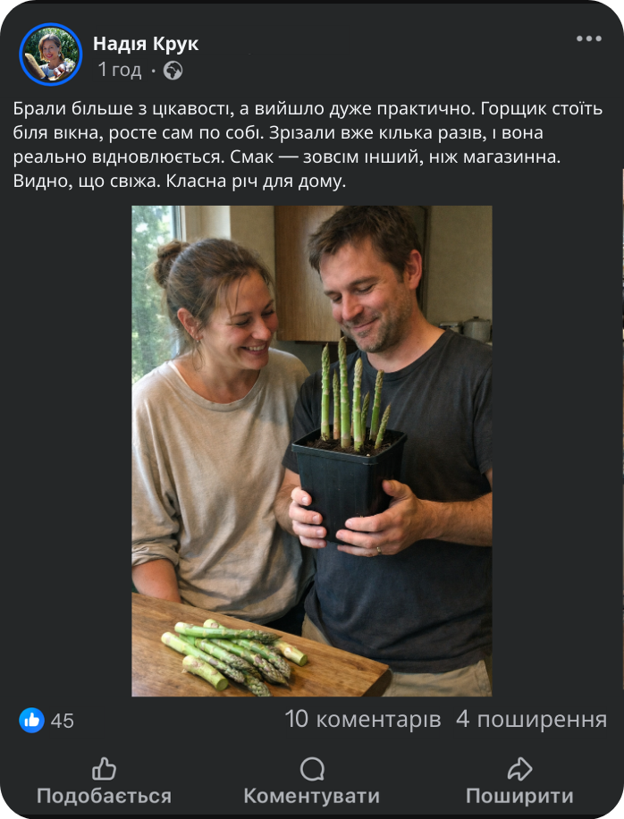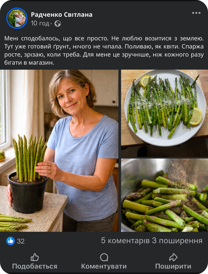 Один горщик коштує менше ніж 100 г спаржі в магазині!
