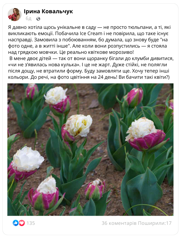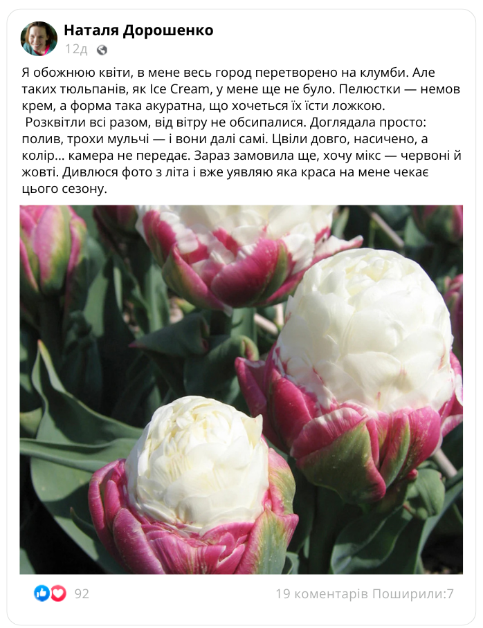 Посадковий матеріал тюльпану «Ice Cream» в наявності та готовий до відправки!
