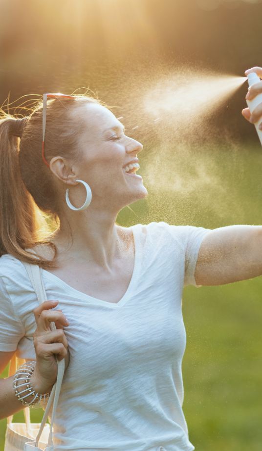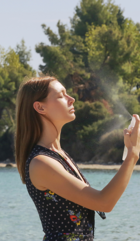 Розпиліть спрей на відстані 20 см від обличчя.